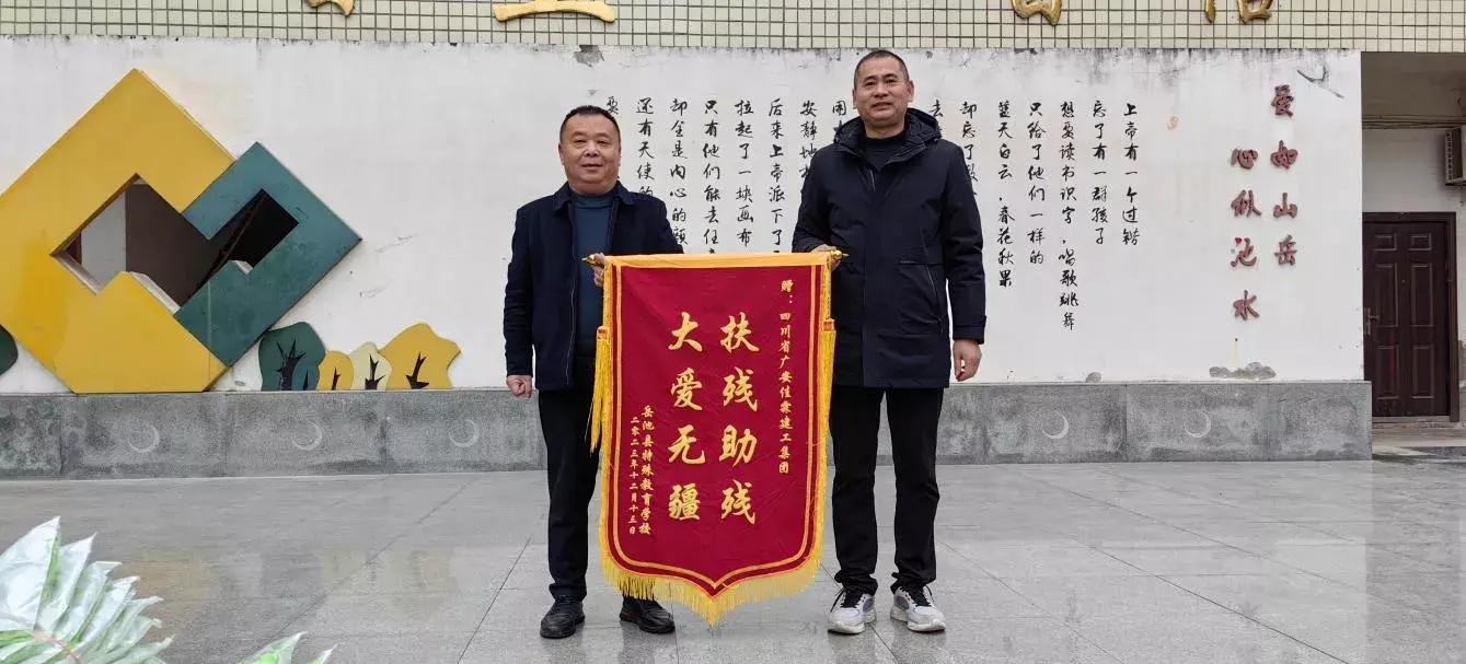 活動現(xiàn)場,岳池縣特殊學(xué)校向佳霖建工集團董事長鄒佳霖贈送了“扶殘助殘 大愛無疆”錦旗。